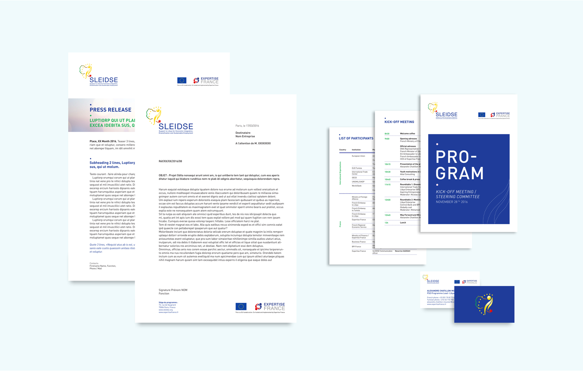 Création de l'identité visuelle et des éléments de communication pour SLEIDSE (programme d'aide Européen en Lybie)